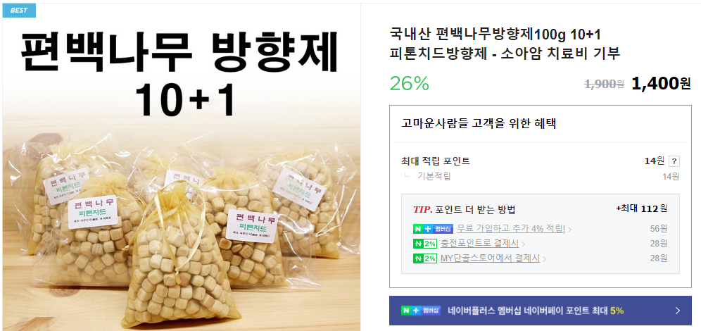 국내산 편백나무방향제100g 10+1 피톤치드방향제 - 소아암 치료비 기부