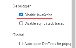 -> 하단 Debugger -> Disable JavaScript에 체크