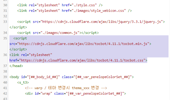 위치 : </head> 바로 위에 (내 기준 35쯤)